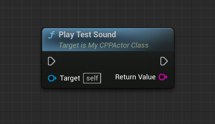 UFUNCTION(BlueprintImplementableEvent, Category="Audio") FString PlayTestSound();